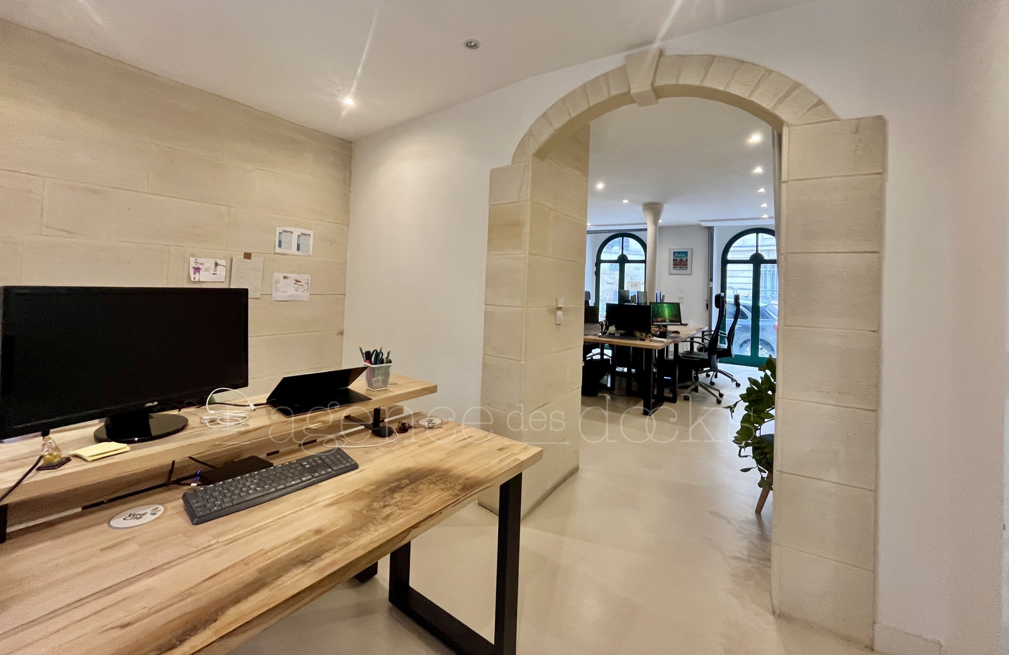 Centre historique: Rares murs commerciaux en rez-de-chaussée Libres d'occupation 65m2carrez et 69m2 au sol Beau local traversant, éclairé par de hautes baies vitrées, bien distribués, Idéal pour des bureaux, professions libérales, cabinets médicales, agence d’architecture ou design etc... On y trouve 3 pièces (bureau 9,85, entrée/salle d'attente 16,21 et open space 27,75m2), une cuisine séparée (9,72m2) et des sanitaires Plein centre, rue calme à côté d’une école Bon état technique (électricité, plomberie, etc)